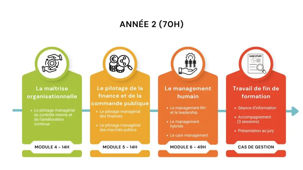 Ce programme de management public vise à renforcer les compétences stratégiques, managériales et de leadership des cadres du secteur public bruxellois. Il permet de mieux comprendre les enjeux institutionnels et territoriaux bruxellois, de traduire les orientations politiques en plans d’action concrets et de piloter efficacement la performance de son organisation. À travers sept modules complémentaires, les participantes et participants développent une vision systémique du management public : gouvernance, planification, pilotage financier, ressources humaines, innovation et bien-être au travail. La formation favorise le partage d’expériences, et la mise en réseau entre pairs. À l’issue du parcours, chaque participante et participant aura renforcé ses compétences en tant que manager public capable d’accompagner le changement, de gérer un portefeuille de projets, de motiver ses équipes et de contribuer activement à la qualité des services rendus aux citoyens.